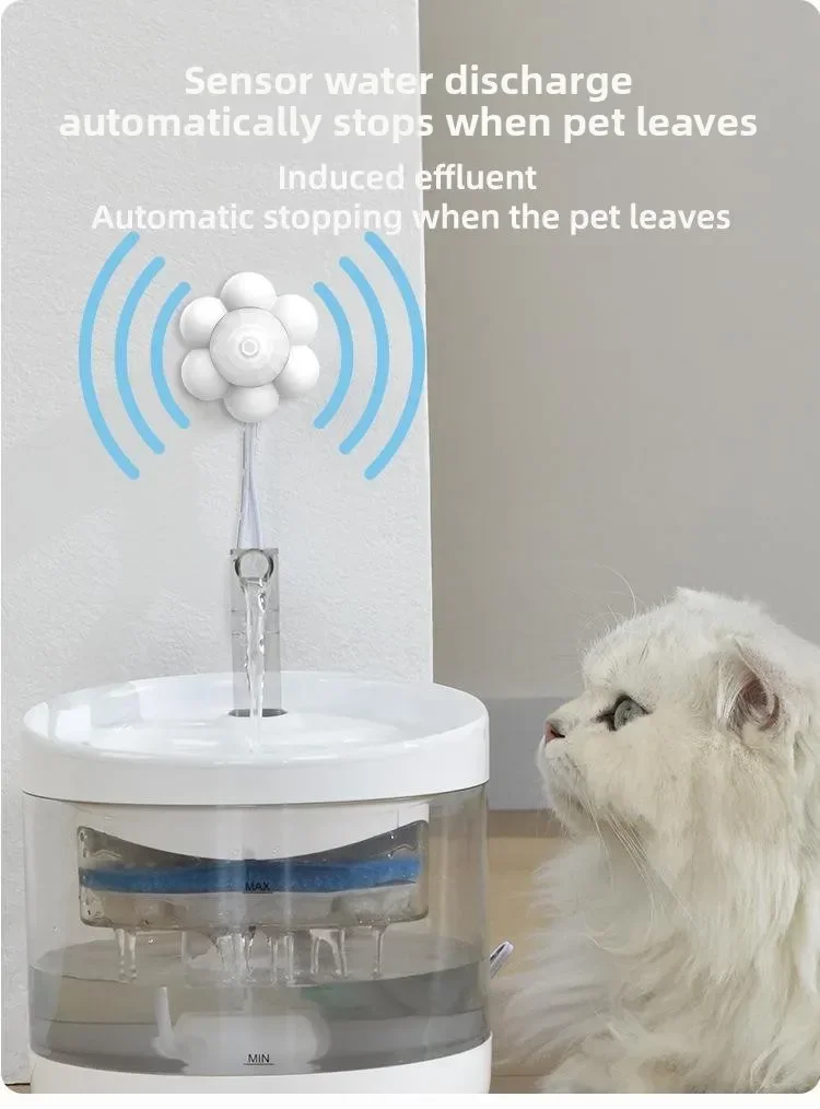 【High Stability】 Automatically turn on the water when the pet is near, and leave the sensing range 2-3 metres away after 30 seconds of filtration and then automatically standby.