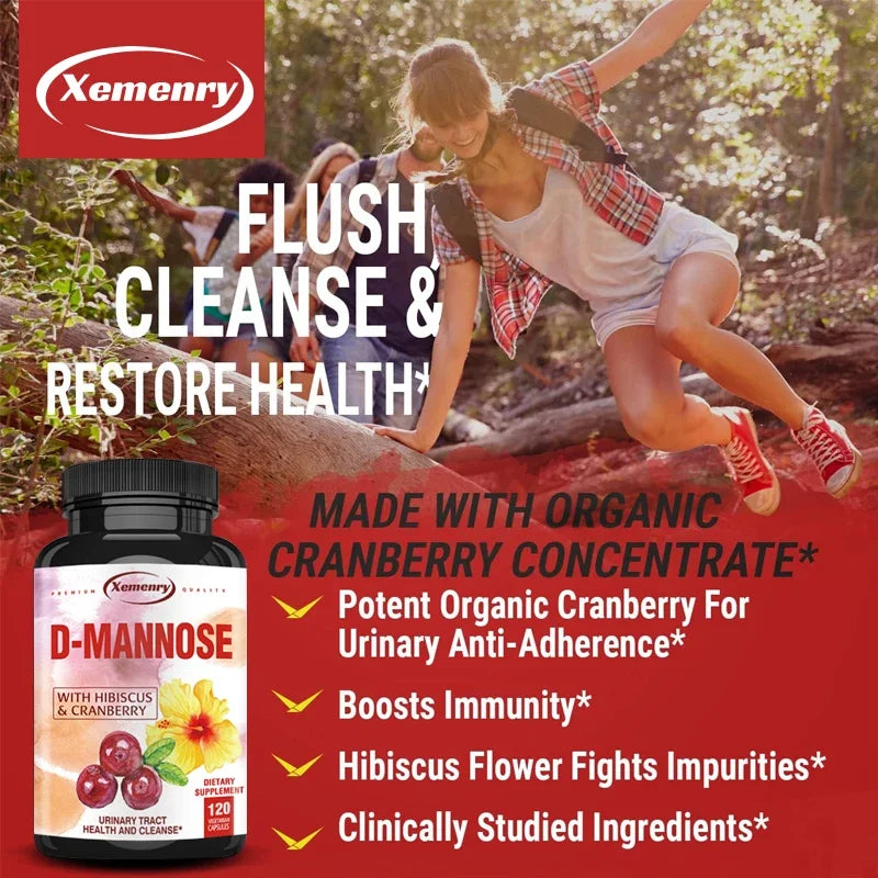 ORGANIC & TRUSTED INGREDIENTS - Boost the benefits of D-Mannose with no tricks, pure organic cranberry fruit concentrate powder for enhanced potency, top quality, for optimal results, helping to keep the lining of your urinary tract and bladder wall clear. Well-researched hibiscus flower extract helps cleanse and remove toxins within UTs while supporting the immune system. Plus powerful D-Mannose, 3 essential supplements in 1 capsule work quickly to help you feel better instantly.