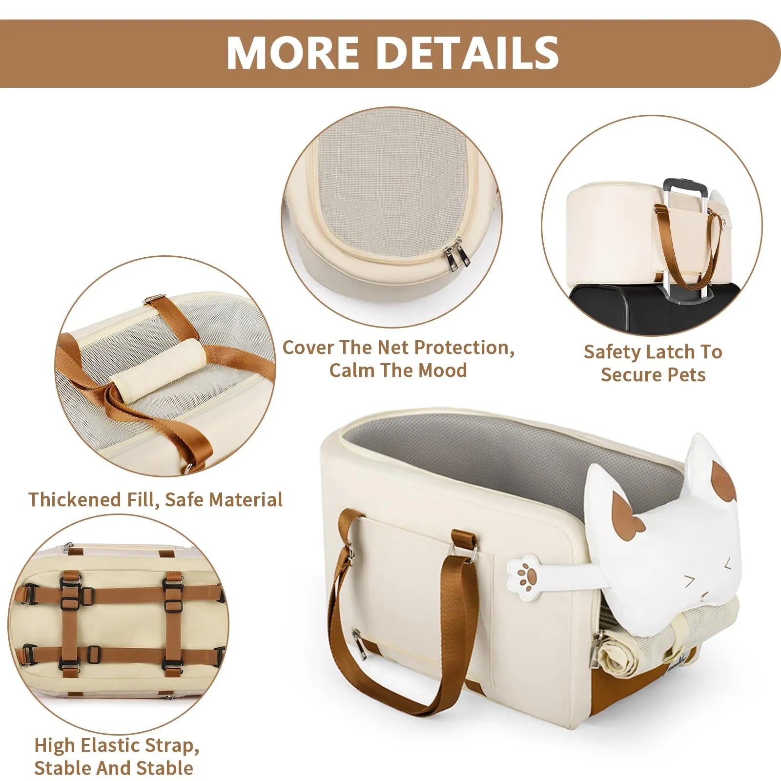 There is a set of tie rod function on both sides, which can be easily fixed on the suitcase. There are straps on both sides of the pet car seat, so when you get out of the car and go elsewhere, there is no need to change your pet travel bag!