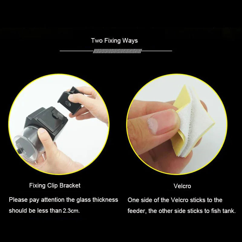 The item can help you feeding your beloved fish in aquarium when you are working, shopping, or travelling outside. The feeding food and time are adjustable. By the(Max,Min) slider, you can increase or decrease the amount of food dispensed per rotation.Can work operated both automatically and manually.