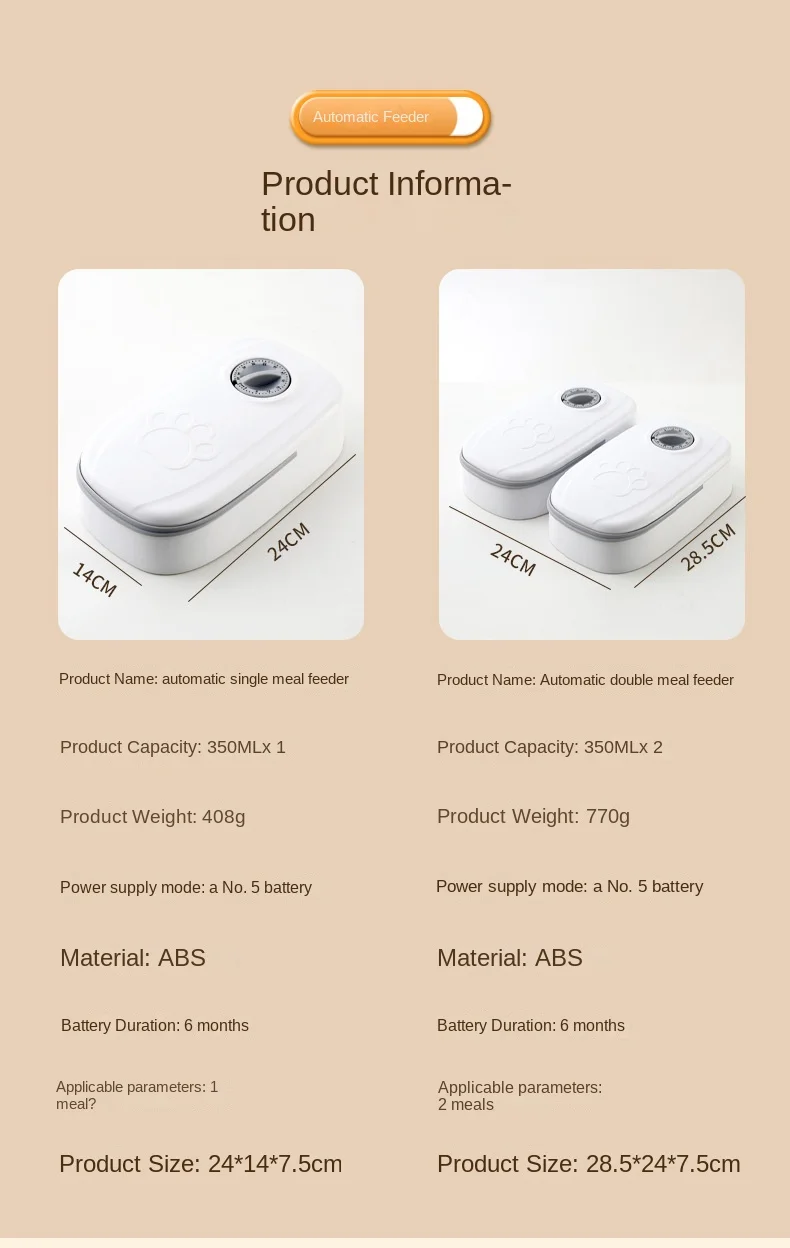Product name; Automatic single meal feeder